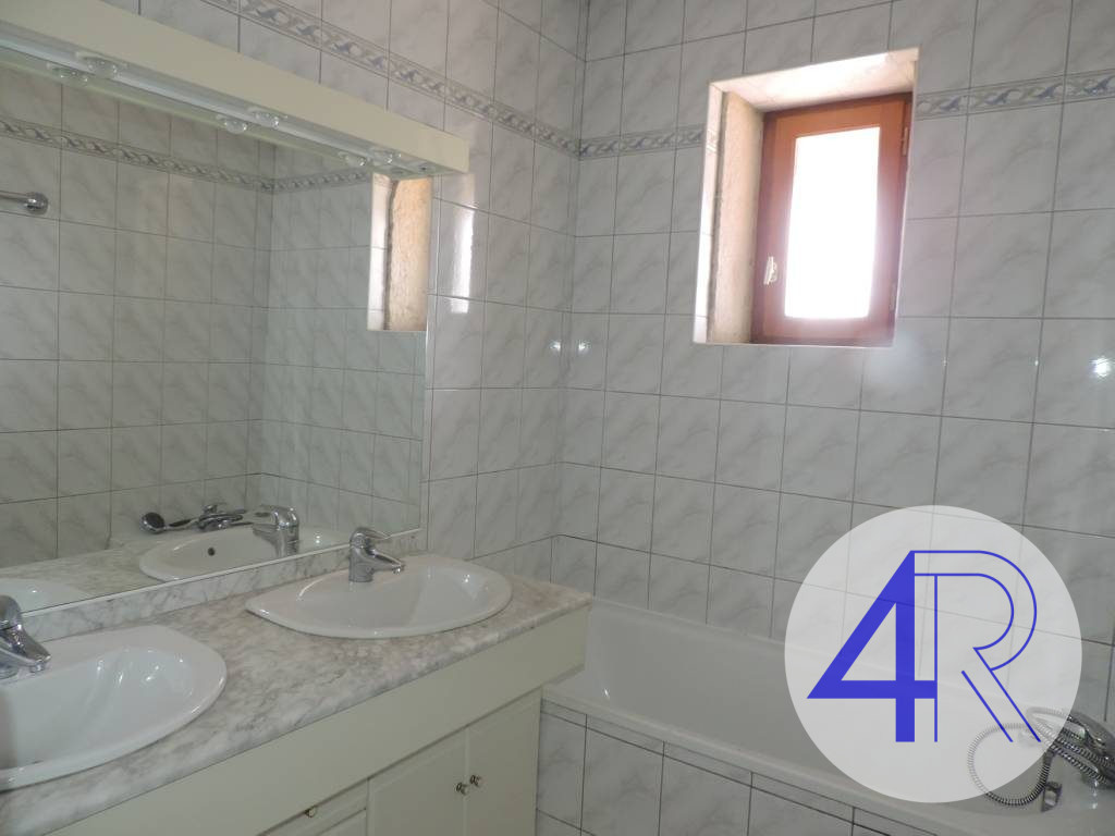 Salon avec cheminée décorative en pierre, cuisine aménagée, quatre chambres ( dont 3 avec placards aménagés), salle de bain, toilettes séparées.